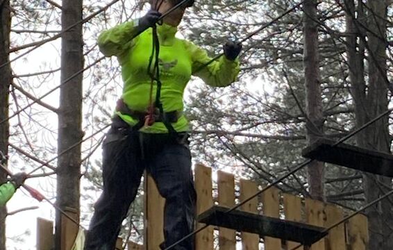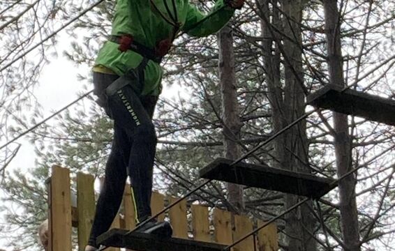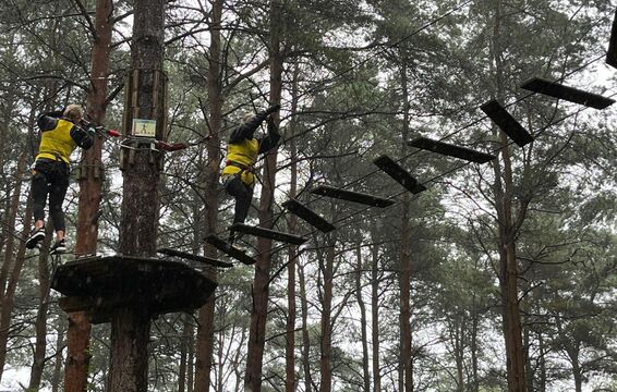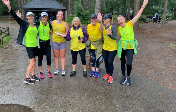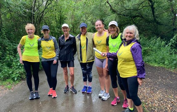 A team of runners met at the golf club and ran 7K to Go Ape at Moors Valley. The rain did not let up and they were soaked to the skin when they arrived with big smiles on their faces at Moors Valley. Here another team picked up the baton and took on the Go Ape Tree Tops Challenge.